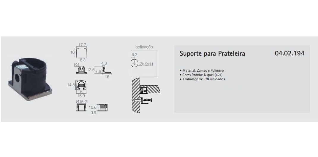 Necessita usinagem de 15 milímetros na face das prateleiras.